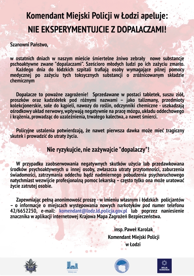 Policja z województwa łódzkiego ostrzega przed dopalaczami!